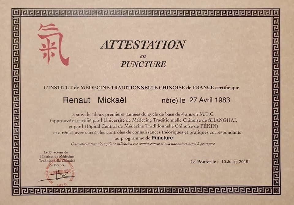 Diplômé de l’Institut de Médecine Traditionnelle Chinoise de France en collaboration avec l’Université de Pékin et Shanghaï :